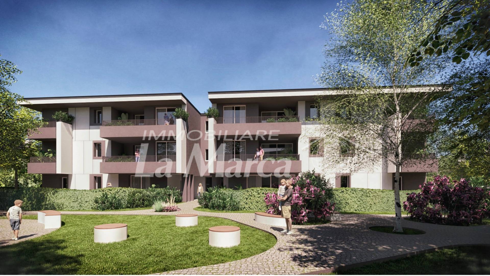 Il verde condominiale, curato e armonioso, è dedicato all'uso esclusivo dei residenti e invita a momenti di relax e convivialità all'aria aperta. Ogni unità dispone inoltre di garage e posto auto.